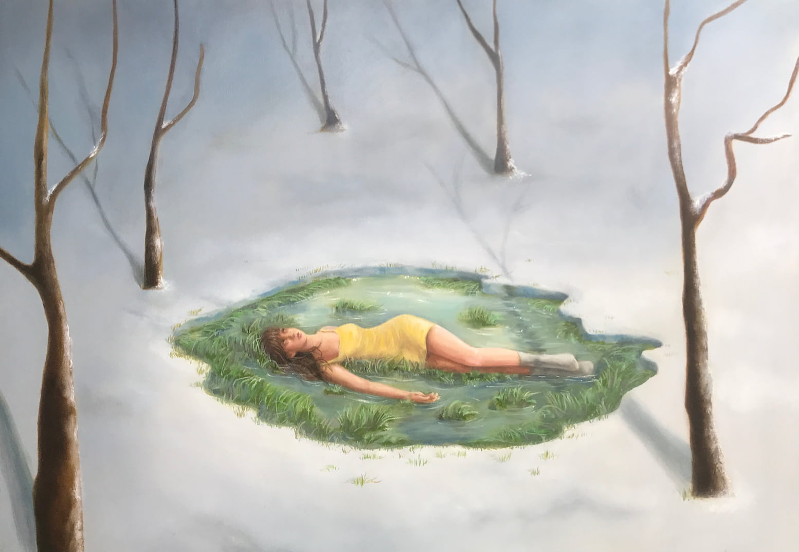 Her surreal art captures the essence of her imagination in a way that feels both accessible and profound. Tria’s work, while simple in its execution, leaves a powerful, lasting impression, drawing the viewer into a world of quiet introspection and emotion.